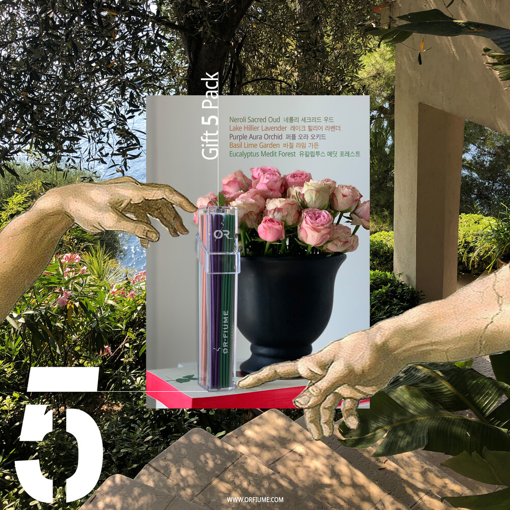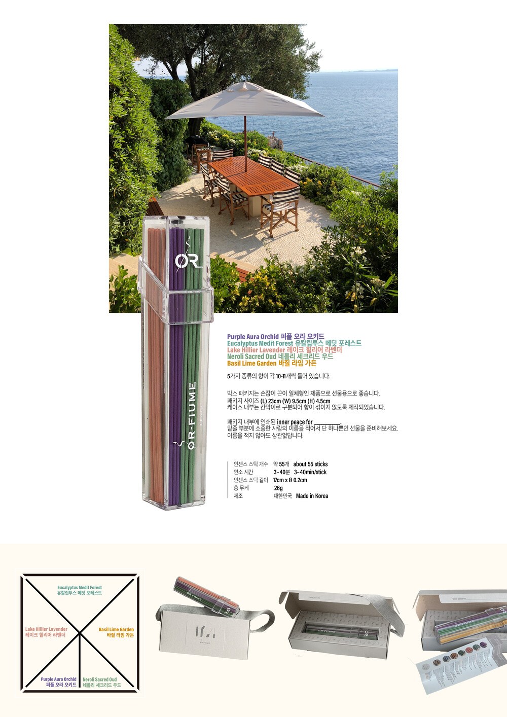 5가지 종류의 향이 각 10~11개씩 들어 있습니다.